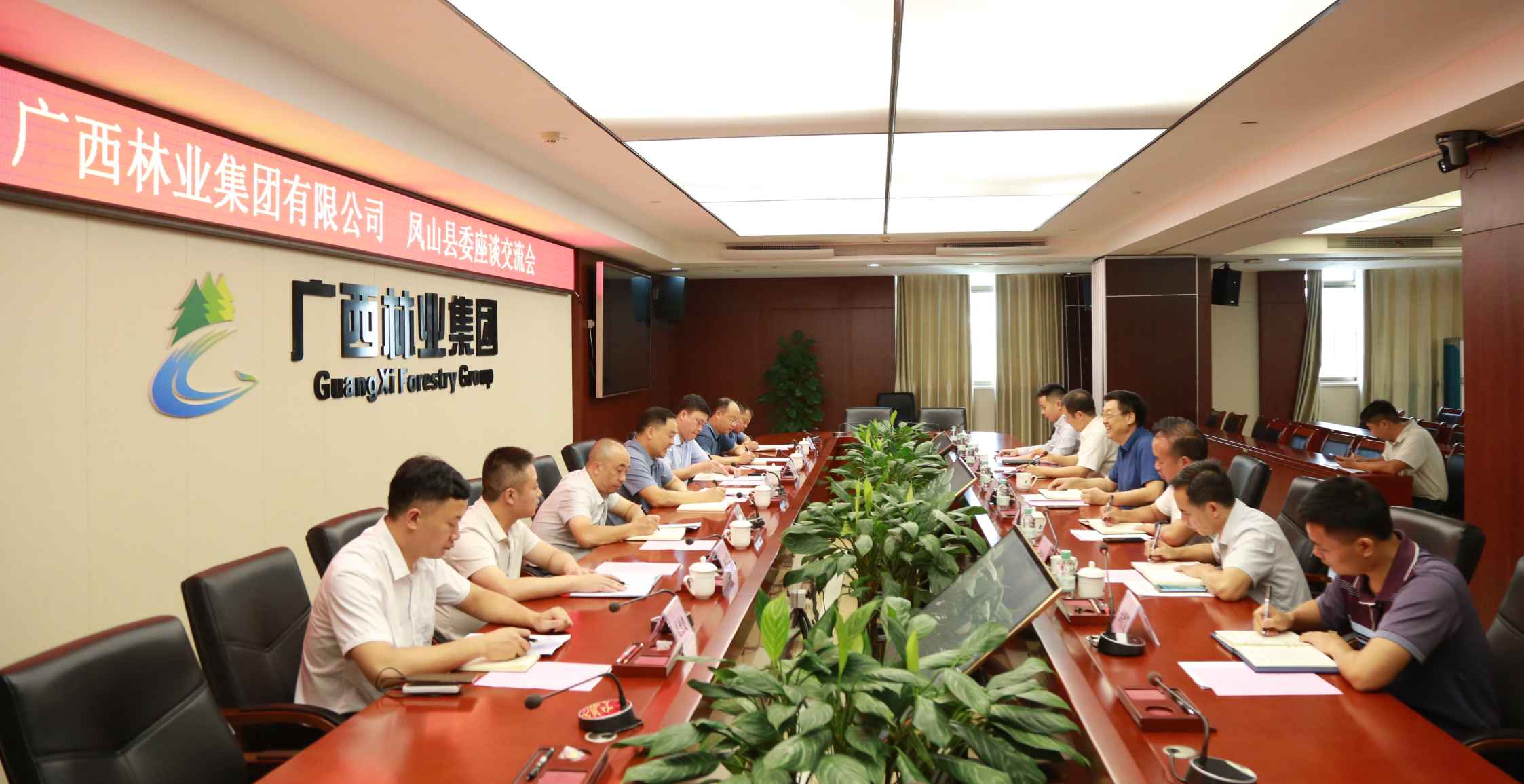 為落實(shí)河池市與廣林集團(tuán)全面合作有關(guān)精神,7月24日,鳳山縣委書記楊勝濤帶隊(duì)到廣林集團(tuán),就國(guó)家儲(chǔ)備林項(xiàng)目開發(fā)、油茶、八角等林產(chǎn)品加工等進(jìn)行了深入探討與交流。廣林集團(tuán)黨委副書記、副董事長(zhǎng)、總經(jīng)理馮小金會(huì)見了楊勝濤一行并出席座談會(huì),廣林集團(tuán)副總經(jīng)理陳繼勇,鳳山縣委常委、副縣長(zhǎng)蘇鐳參加座談。